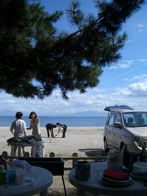 場所は琵琶湖沿いにある白ひげキャンプ場。星と空気がとてもきれいで、普段から資本主義の文化で薄汚れているわたしたちには、非常に違和感のあるキャンプ場でした。